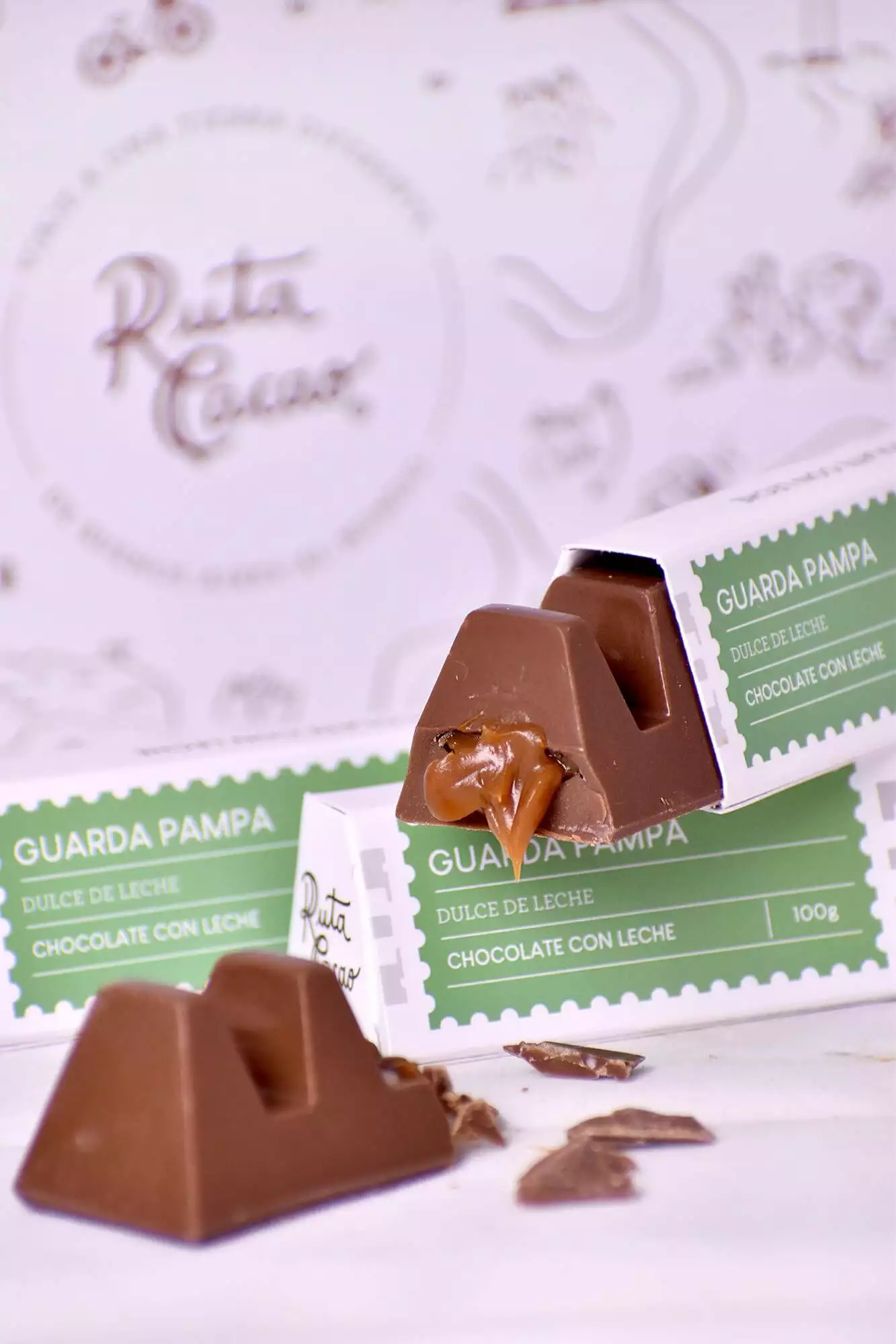 3 Tabletas Guarda Pampa Chocolate 70% cacao rellenas de Dulce de Leche